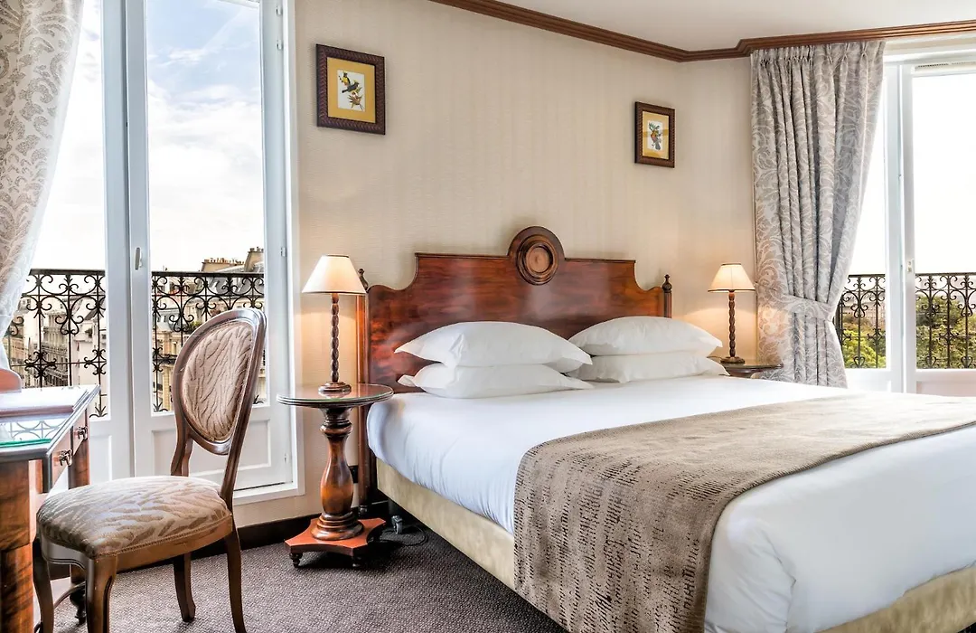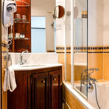 Some rooms at the Paris hotel are fitted with individual climate control and a central heating, and such self-catering options as an electric kettle. Along with a stone fireplace, they also have a study desk. Some rooms open onto the inner courtyard.